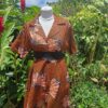Robe asymétrique courte devant et longue derrière, au style élégant et original. Sa coupe moderne et son tissu imprimé coloré en font une pièce tendance pour un look chic et affirmé.