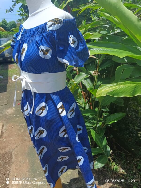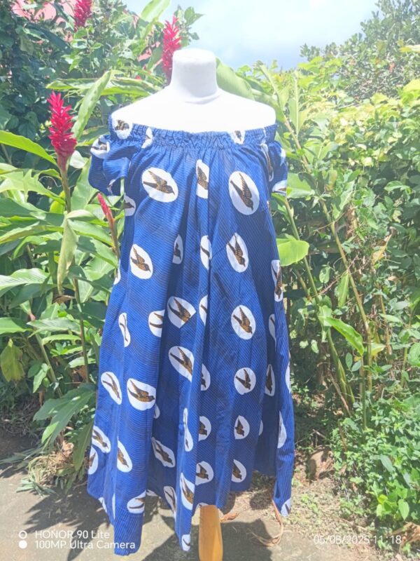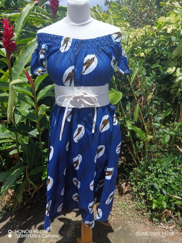 Cette robe col bateau se distingue par son style élégant et décontracté, idéal pour la saison estivale. Son encolure élastiquée permet de la porter de différentes façons : sur les épaules pour un style classique ou dégagée pour un effet bohème.